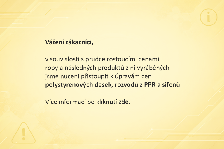 11. 3. 2026Vzhledem k postupnému nárůstu cen od našich dodavatelů, které probíhá již od počátku roku 2026, jsme nuceni přistoupit k navýšení našich prodejních cen a to od 1. 4. 2026. Konkrétní zvýšení základních cen zde...