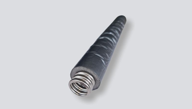 Trubky z nerezové oceli AISI 304 s tepelnou izolací pro sanitární, topné a chladící systémy. Izolace tloušťky 6 mm z expandovaného polyethylenu EPE s ochranným šedým potahem. Tento typ izolace zajišťuje vysokou odolnost proti difůzi vodní páry s následným zachováním tepelně izolačních vlastností.
